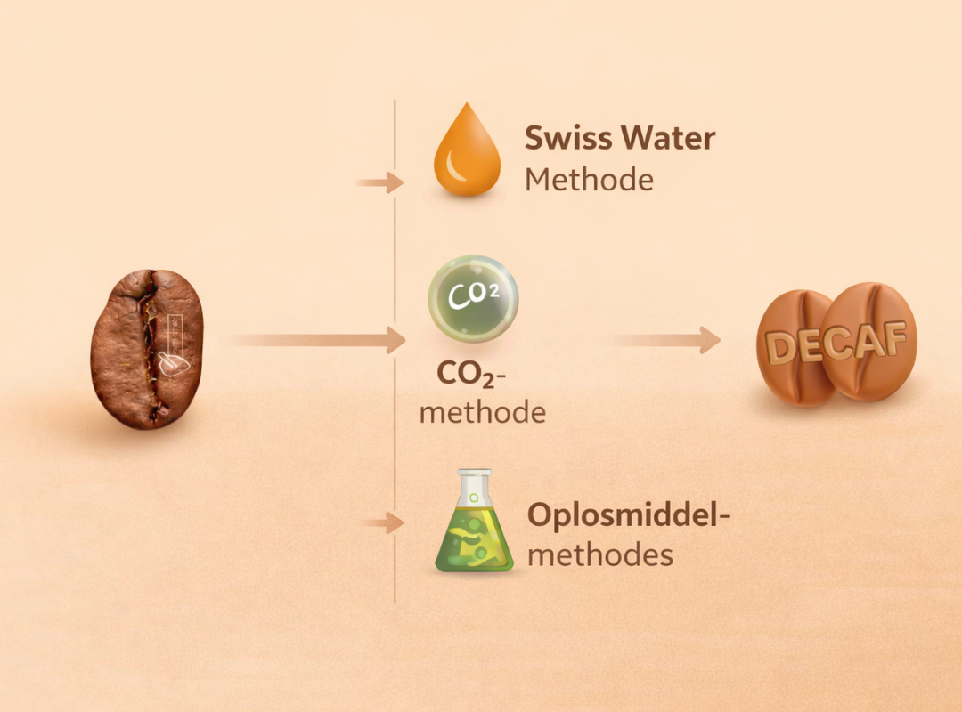 Er bestaat niet zoiets als een natuurlijke cafeïnevrije koffieboon. De cafeïne wordt dus verwijderd uit groene (ongebrande) bonen, voor het brandproces. Dat gebeurt met één van deze methodes: